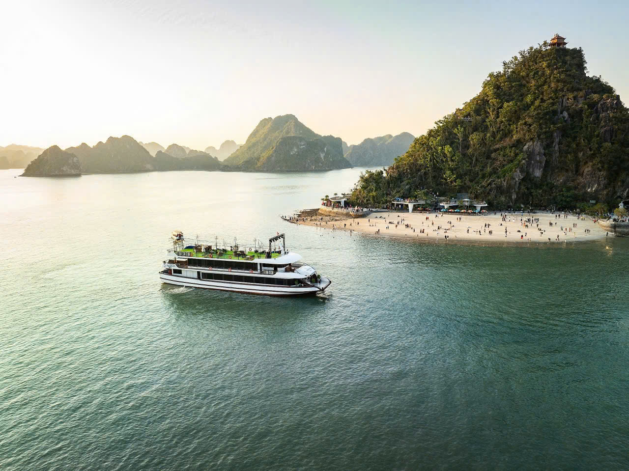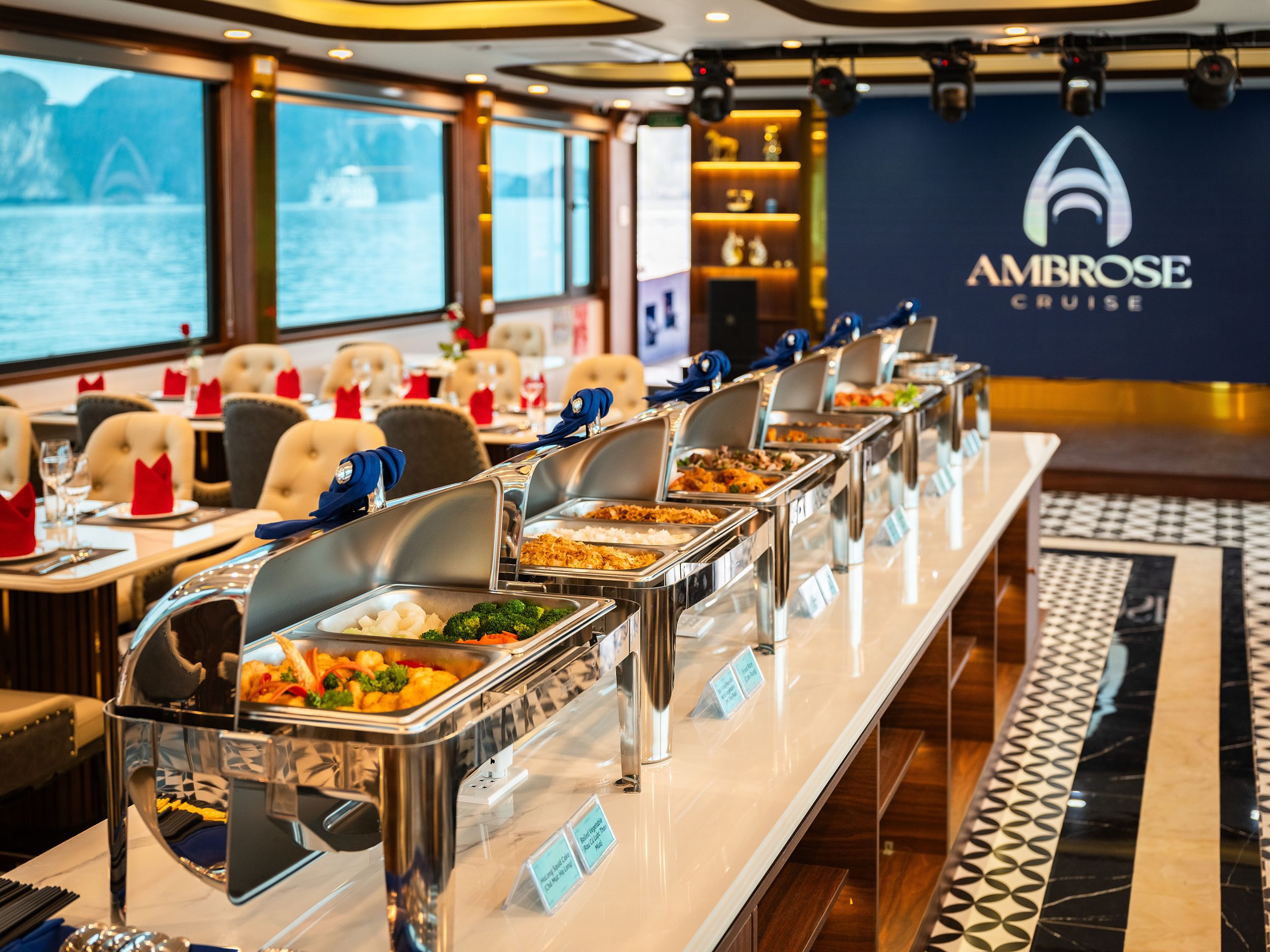 Thưởng thức bữa trưa buffet/set menu sang trọng, chèo kayak hoặc đò nan tại Hang Luồn, tiệc trà chiều trên sundeck cùng khung cảnh hoàng hôn lãng mạn – tất cả tạo nên một hành trình ngắn mà đáng nhớ.