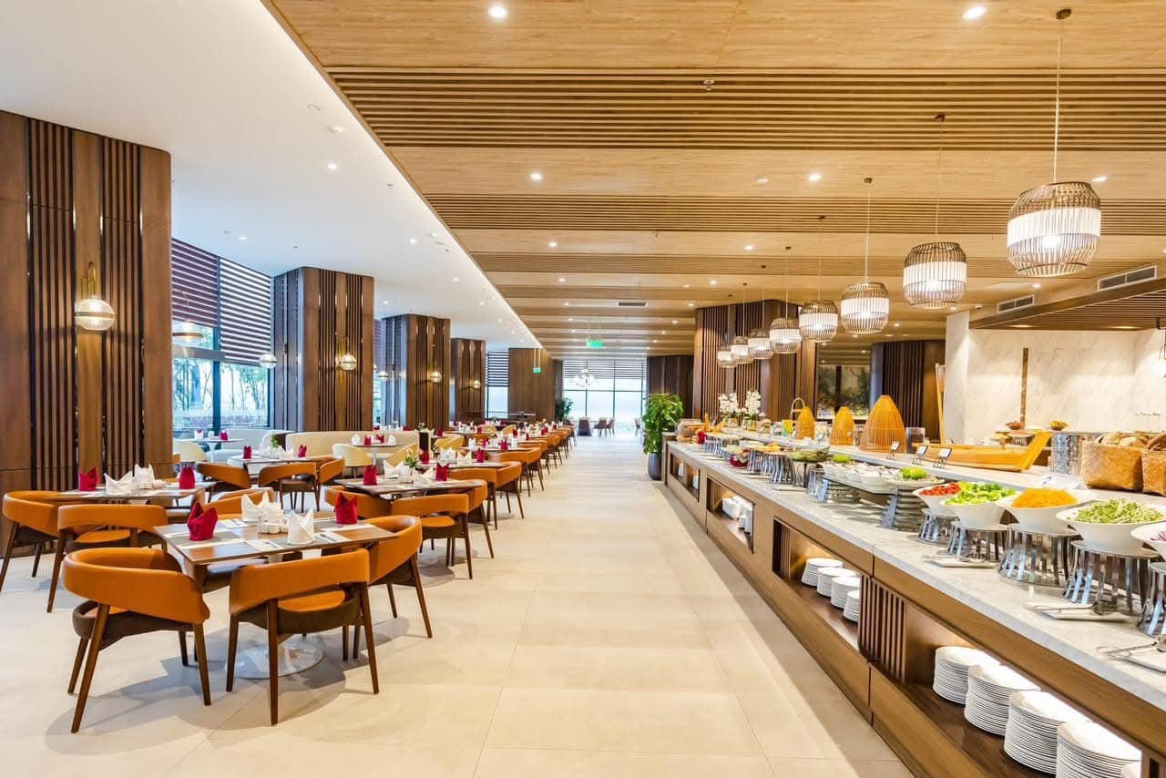 Không gian phòng nghỉ được thiết kế hiện đại, rộng rãi, mang lại cảm giác thư thái sau hành trình khám phá Hạ Long. Tại đây, quý khách sẽ được tận hưởng đêm nghỉ tại khách sạn chuẩn 5 sao với Bữa sáng buffet phong phú, đa dạng cùng miễn phí tiện ích: Hồ bơi ngoài trời, Phòng gym hiện đại, Kid Club cho trẻ em