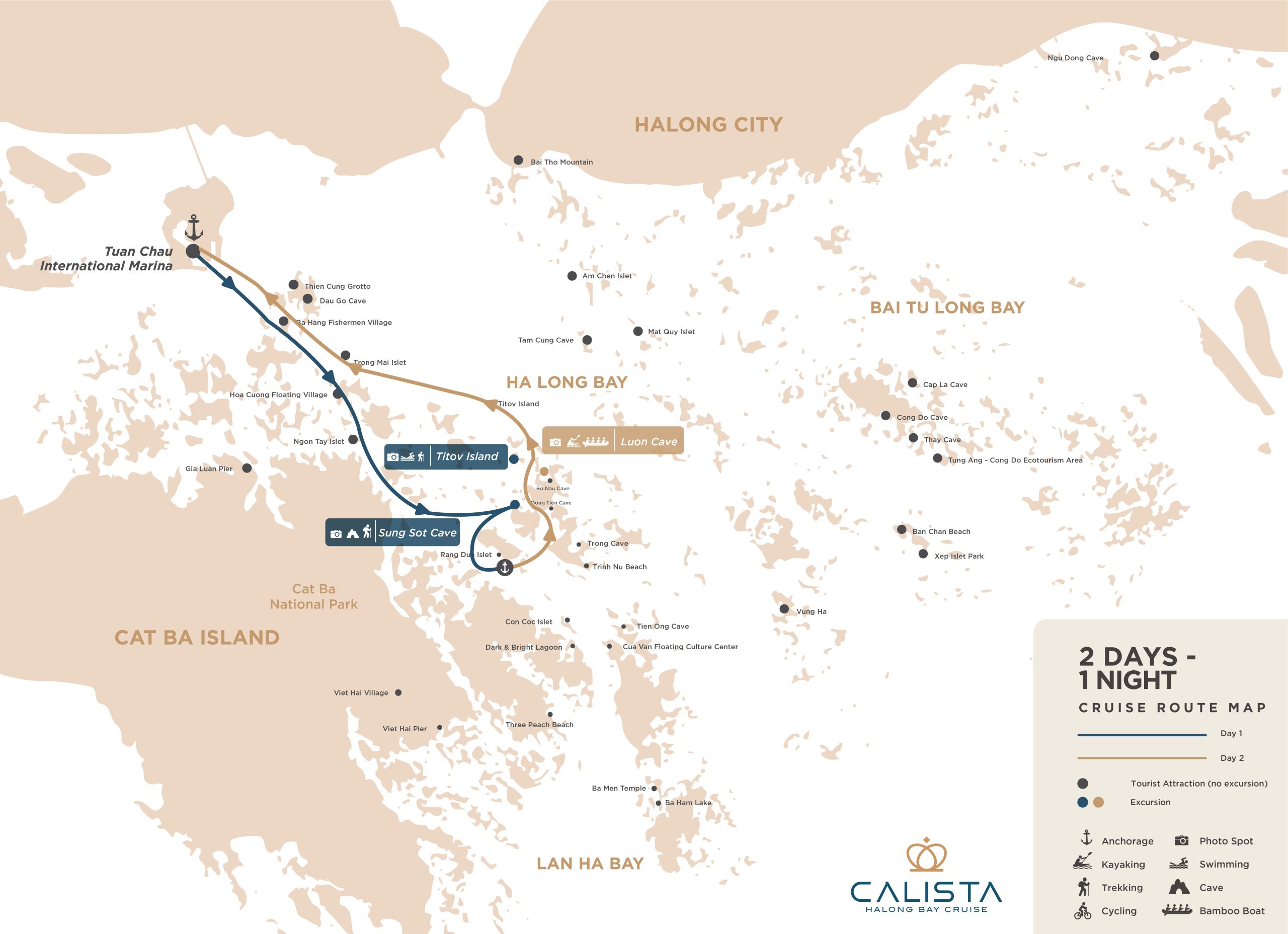 Khi nhẹ nhàng lướt qua những làn nước huyền thoại của Vịnh Hạ Long, Calista Cruise như truyền tải tinh thần của Calista, hé lộ khung cảnh mà nàng từng chiêm ngưỡng: kỳ vĩ, bí ẩn và tràn đầy sức sống. Đây chính là trải nghiệm giúp du khách khám phá Vịnh Hạ Long theo cách tinh tế và độc nhất.